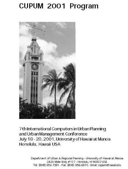 CUPUM 2001 – Honolulu CUPUM 2001 was hosted by Karl Kim at the Department of Urban and Regional Planning, University of Hawaii, Manoa, Hawaii < Click on the links below to open a new tab and access/download the selected file(s) > Photos Program